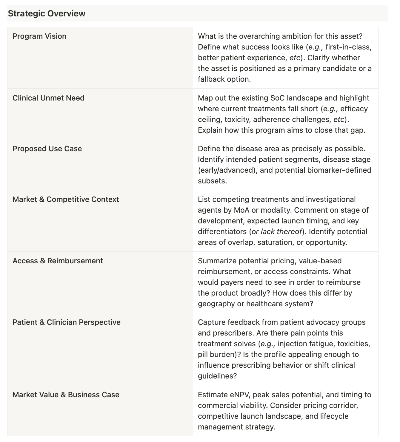 Fortunately, including voices from regulatory, commercial, and market access domains is becoming easier. Input may come from experienced advisors, speciality consultants, and a new wave of pipeline and business intelligence (BI) tools. Even open-source Deep Research models can serve as a starting point.