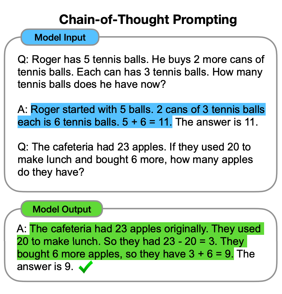 Contemporary LLMs are more akin to precocious students, prompting a second group of Google researchers to ask whether a model can achieve high performance without attending extensive tutoring sessions (i.e., SFT). Instead, they provided a pretrained LLM with a within-prompt example—an {input, rationale, output} tuple—providing a reasoning scaffold that the model would follow to generate a chain-of-thought (CoT) at inference time.